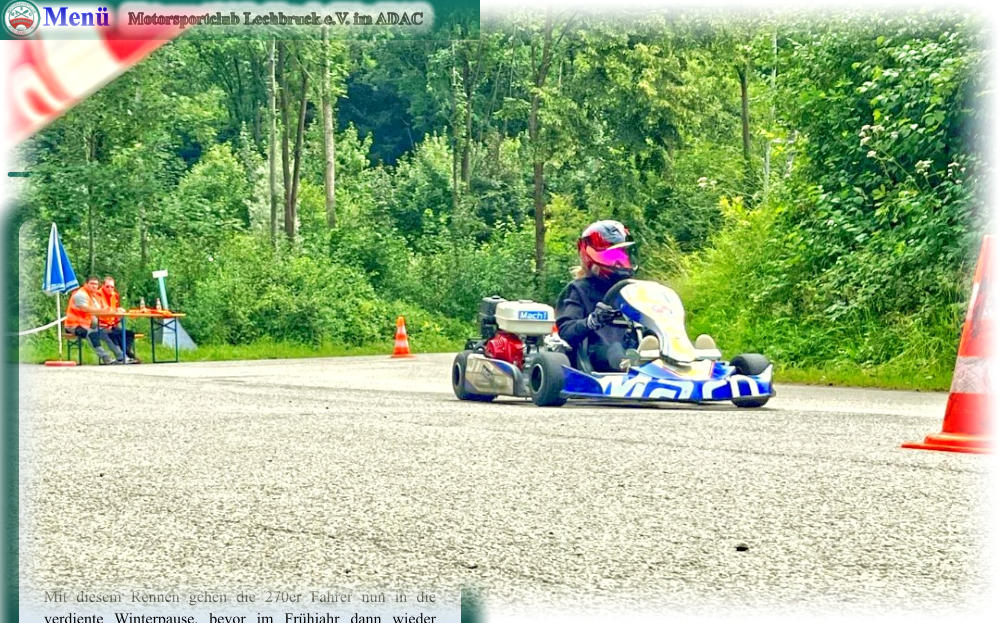 Fotos:  Monika Müller   Text:  Monika Müller  Südbayerischer Endlauf der 270er Kartslalom-Meisterschaft 2025 beim MSC Vilsbiburg und AMC Moosburg In Moosburg fand am Samstag den 27.09.2025 der diesjährige Endlauf zur südbayerischen ADAC 270 Kartslalom Meisterschaft statt. Es qualifizierten sich hierfür 60 Teilnehmerinnen und Teilnehmer aus den Regionen Nord, West und Süd in den vier Klassen. Das Schiedsgericht (Manfred Poschinger, Manuel Freitag und Wolfgang Hinrichs) traf sich bereits am Vorabend um den Parcours vorzubereiten. Es wurden zwei sehr unterschiedliche Streckenverläufe gestaltet. Die Startreihenfolge ergab sich in den ersten beiden Wertungsläufen aus dem Endergebnis der abgelaufenen Saison. In den Wertungsläufen drei und vier wurde nach den Platzierungen der ersten beiden Wertungsläufe in umgekehrter Reihenfolge gestartet. Der zweite Parcours war etwas einfacher und ca. 10 Sekunden kürzer zu fahren. Bei trockenem Wetter und kühlen Temperaturen war es für alle Beteiligten eine gelungene Veranstaltung.  Giovanni Rotondaro vom MSC Lechbruck hatte sich in der K3 für die Teilnahme qualifiziert und lag nach drei Läufen sehr gut in der Rangliste. Leider unterliefen ihm im vierten Lauf zwei Pylonen Fehler, die ihn in der Platzierung nach hinten rutschen ließen und er es deswegen nicht auf die Starterliste für die Süddeutsche Meisterschaft beim MSC Knetzgau am 11/12. Oktober 2025 schaffte. Nach der Ehrung der Südbayerischen ADAC 270 Kartslalom Meisterinnen und Meister wurden die drei besten südbayerischen Mannschaften des Jahres 2025 ausgezeichnet. Den Titel Südbayerischer ADAC 270 Kartslalom Mannschaftsmeister um den Mauritz Pokal sicherte sich die MSG Sonthofen. Auf dem zweiten Platz kam erneut der AMC Bad Aibling. Den dritten Platz auf dem Podest erreichte die MSG Bayer. Wald Hutthurm.   Am 27.09.2025 fand der  •	diesjährige Endlauf zur südbayerischen ADAC 270 Kartslalom Meisterschaft statt. Endlauf der 270er Kartslalom-Meisterschaft 2025 Vom MSC Lechbruck ging Boris Huber in der Königsklasse K4 als einer von insgesamt  16 Qualifizierten aus ganz Bayern in seiner Altersklasse an den Start – und rollte das Feld  in Sonthofen von hinten auf. Bei schlechter werdenden Bedingungen, von anfangs trockener Witterung, bis zu anhaltendem Regen im vierten Wertungslauf, landete er mit vier fehlerfreien Läufen auf einem hervorragenden vierten Platz. Florian Wieland vom benachbarten MSC Steingaden hatte sich ebenfalls für die Teilnahme qualifiziert und wurde siebter. Sieger wurde Jurij Zerr von der gastgebenden MSG Sonthofen vor Markus Wielsch und Monika Frerichs (beide AMC Bad Aibling). Mit diesem Rennen gehen die 270er Fahrer nun in die verdiente Winterpause, bevor im Frühjahr  dann wieder fleißig trainiert wird, um die Erfolge fortzusetzen.  Am 04. Oktober fand beim MSG Sonthofen e.V die Bayerische 270er Kart Slalom Meisterschaft 2025 statt.  Bayerische 270er Kart Slalom Meisterschaft 2025   Fotos:  Monika Müller   Text:  Monika Müller